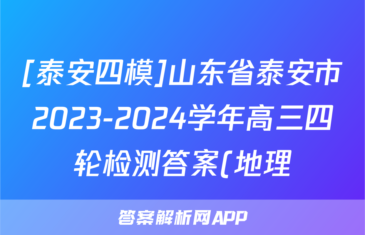 [泰安四模]山东省泰安市2023-2024学年高三四轮检测答案(地理)正在持续更新,目前2026卷行天下答案网为大家整理了相关试题及答案,供大家查缺补漏,高效提升成绩。