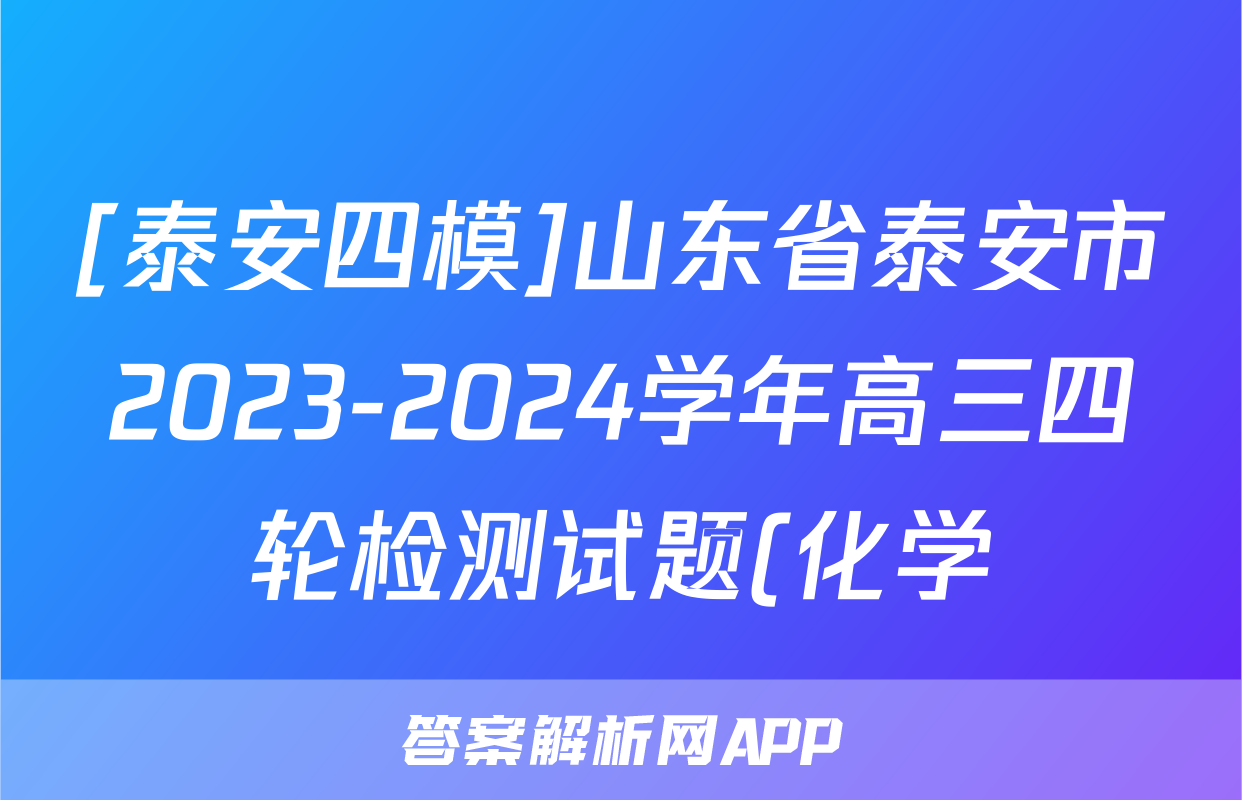 [泰安四模]山东省泰安市2023-2024学年高三四轮检测试题(化学)正在持续更新,目前2026卷行天下答案网为大家整理了相关试题及答案,供大家查缺补漏,高效提升成绩。