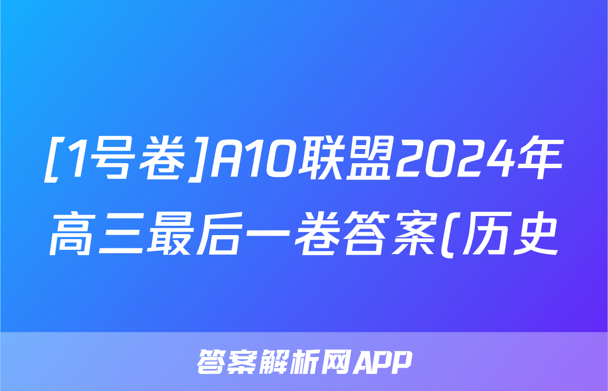[1号卷]A10联盟2024年高三最后一卷答案(历史)正在持续更新,目前2026卷行天下答案网为大家整理了相关试题及答案,供大家查缺补漏,高效提升成绩。