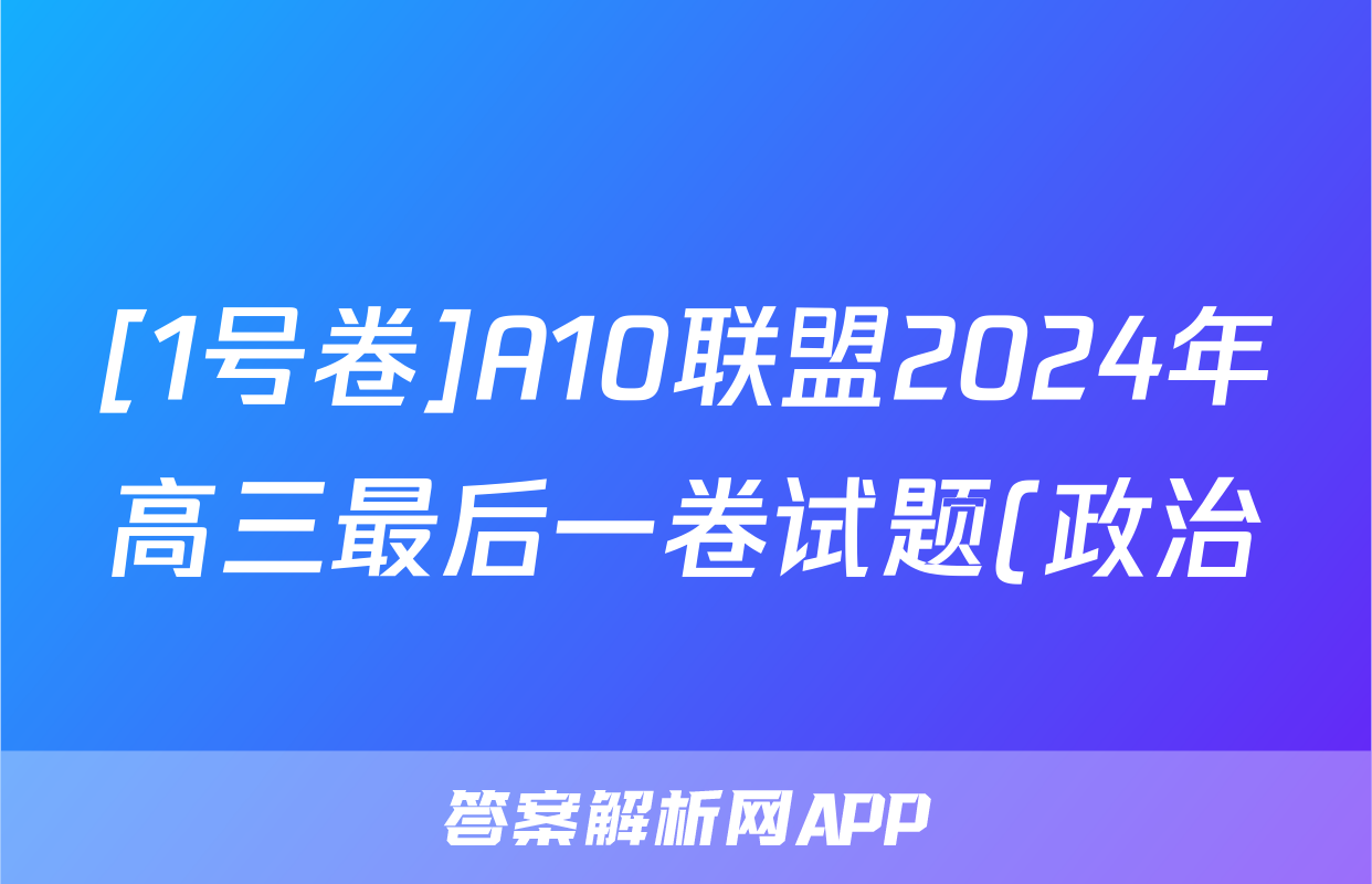 [1号卷]A10联盟2024年高三最后一卷试题(政治)正在持续更新,目前2026卷行天下答案网为大家整理了相关试题及答案,供大家查缺补漏,高效提升成绩。