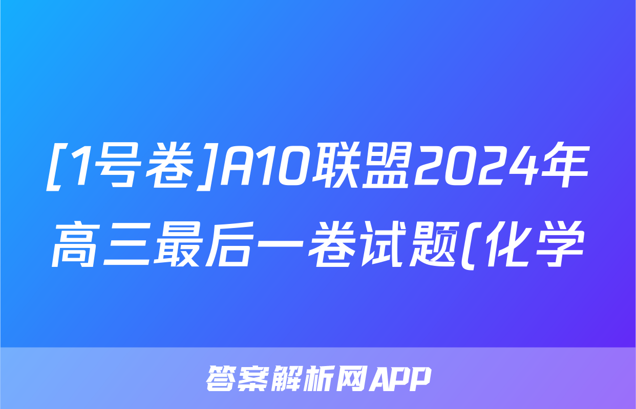 [1号卷]A10联盟2024年高三最后一卷试题(化学)正在持续更新,目前2026卷行天下答案网为大家整理了相关试题及答案,供大家查缺补漏,高效提升成绩。