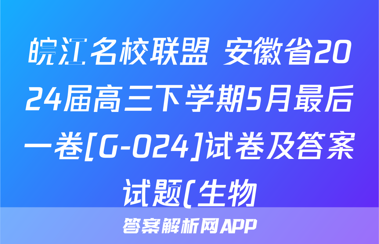 皖江名校联盟 安徽省2024届高三下学期5月最后一卷[G-024]试卷及答案试题(生物)正在持续更新,目前2026卷行天下答案网为大家整理了相关试题及答案,供大家查缺补漏,高效提升成绩。