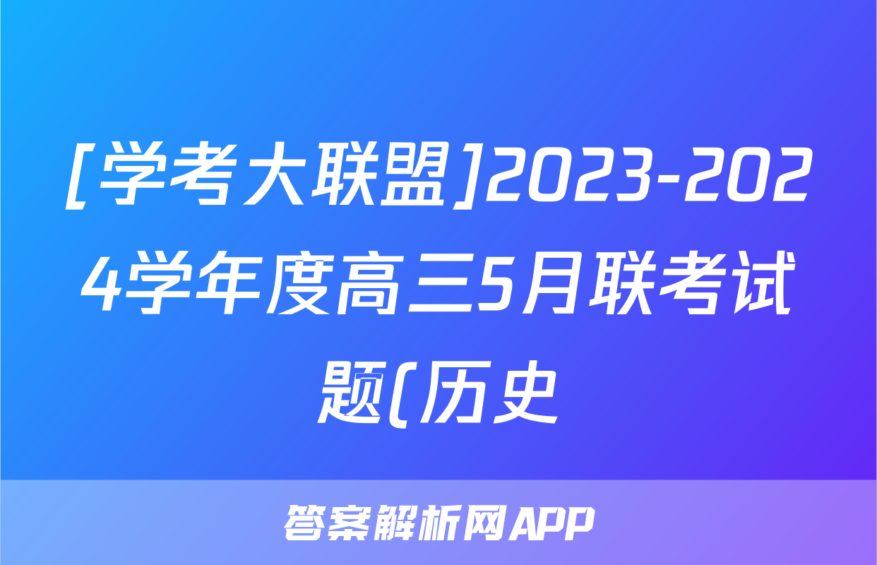 [学考大联盟]2023-2024学年度高三5月联考试题(历史)正在持续更新,目前2026卷行天下答案网为大家整理了相关试题及答案,供大家查缺补漏,高效提升成绩。