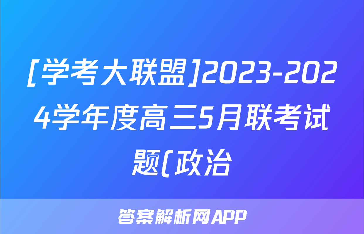 [学考大联盟]2023-2024学年度高三5月联考试题(政治)正在持续更新,目前2026卷行天下答案网为大家整理了相关试题及答案,供大家查缺补漏,高效提升成绩。