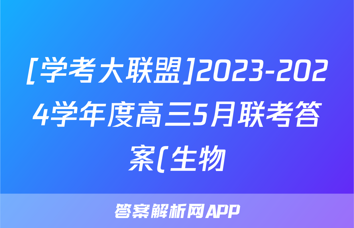 [学考大联盟]2023-2024学年度高三5月联考答案(生物)正在持续更新,目前2026卷行天下答案网为大家整理了相关试题及答案,供大家查缺补漏,高效提升成绩。