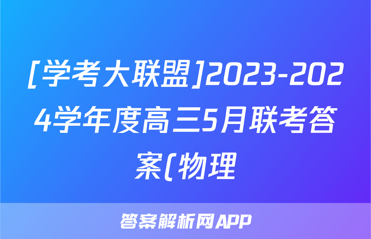 [学考大联盟]2023-2024学年度高三5月联考答案(物理)正在持续更新,目前2026卷行天下答案网为大家整理了相关试题及答案,供大家查缺补漏,高效提升成绩。