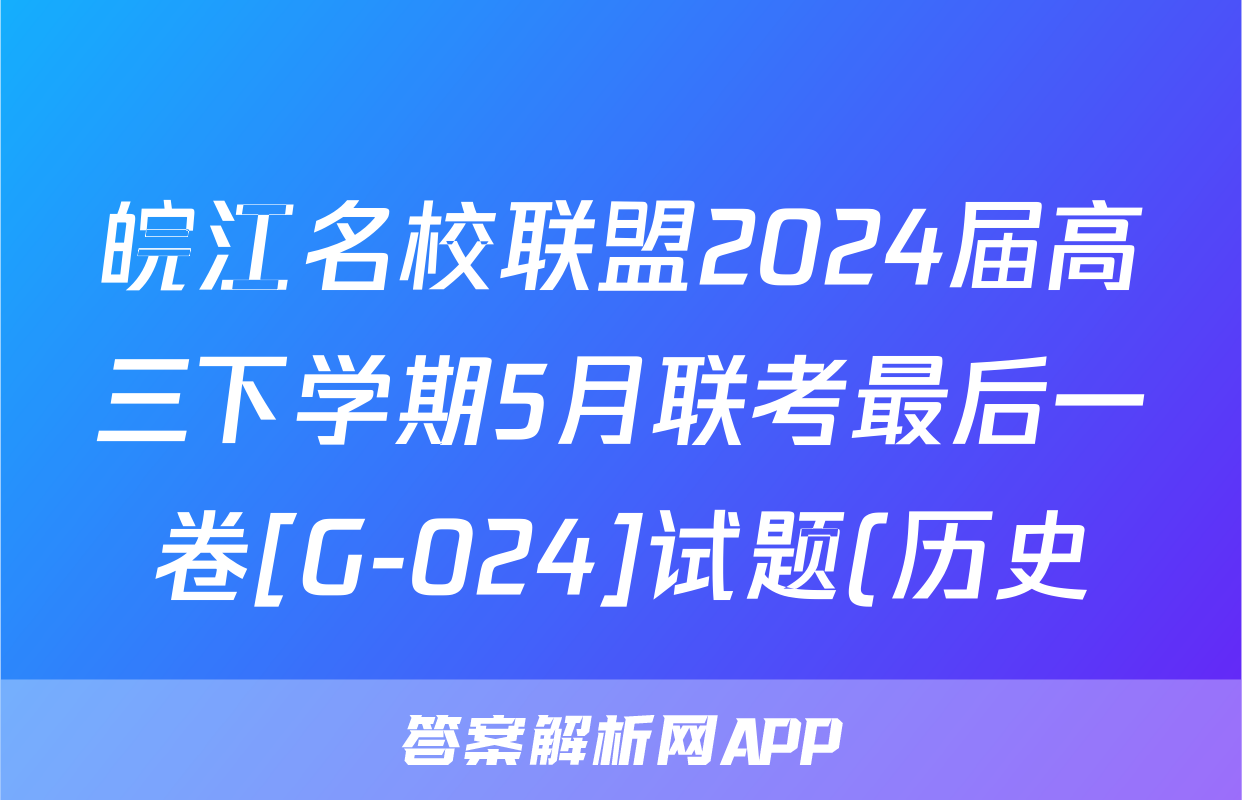 皖江名校联盟2024届高三下学期5月联考最后一卷[G-024]试题(历史)正在持续更新,目前2026卷行天下答案网为大家整理了相关试题及答案,供大家查缺补漏,高效提升成绩。
