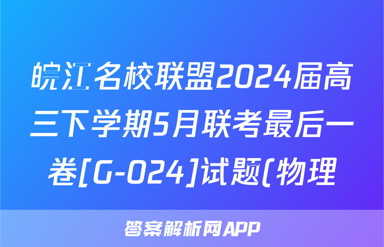 皖江名校联盟2024届高三下学期5月联考最后一卷[G-024]试题(物理)正在持续更新,目前2026卷行天下答案网为大家整理了相关试题及答案,供大家查缺补漏,高效提升成绩。