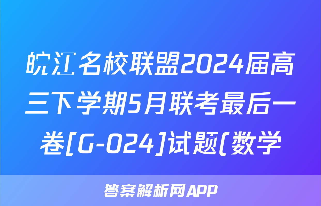 皖江名校联盟2024届高三下学期5月联考最后一卷[G-024]试题(数学)正在持续更新,目前2026卷行天下答案网为大家整理了相关试题及答案,供大家查缺补漏,高效提升成绩。