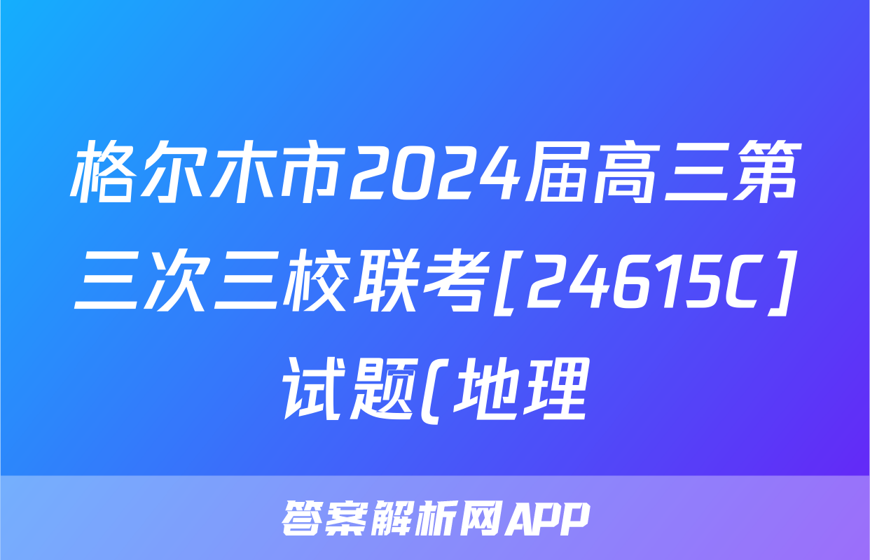 格尔木市2024届高三第三次三校联考[24615C]试题(地理)正在持续更新,目前2026卷行天下答案网为大家整理了相关试题及答案,供大家查缺补漏,高效提升成绩。