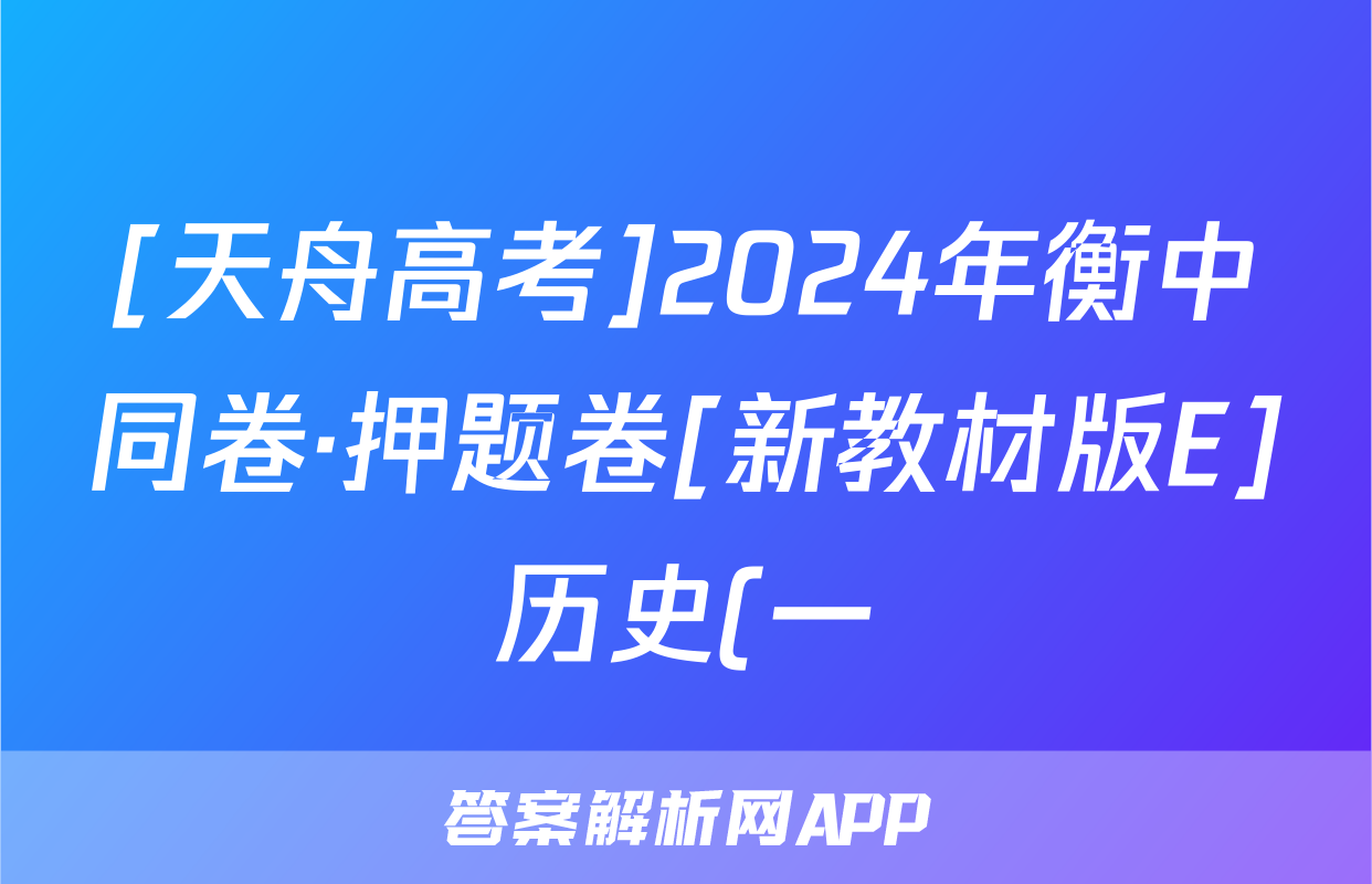 [天舟高考]2024年衡中同卷·押题卷[新教材版E]历史(一)1试题正在持续更新,目前2026卷行天下答案网为大家整理了相关试题及答案,供大家查缺补漏,高效提升成绩。