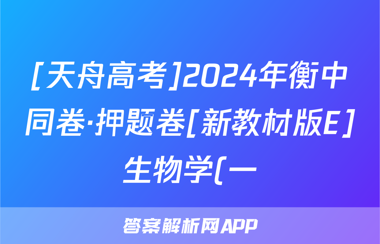 [天舟高考]2024年衡中同卷·押题卷[新教材版E]生物学(一)1答案正在持续更新,目前2026卷行天下答案网为大家整理了相关试题及答案,供大家查缺补漏,高效提升成绩。