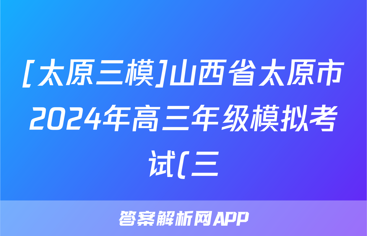 [太原三模]山西省太原市2024年高三年级模拟考试(三)3试题(化学)正在持续更新,目前2026卷行天下答案网为大家整理了相关试题及答案,供大家查缺补漏,高效提升成绩。