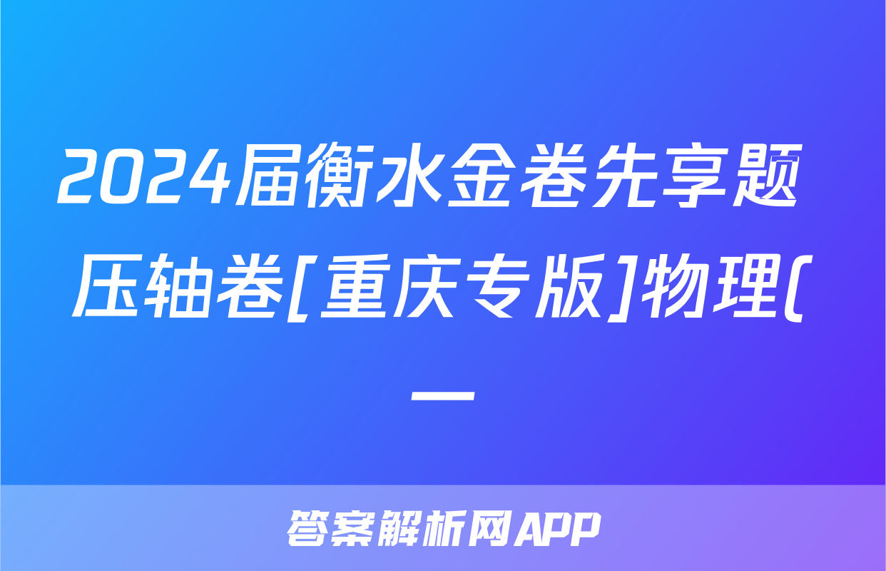 2024届衡水金卷先享题 压轴卷[重庆专版]物理(一)1答案正在持续更新,目前2026卷行天下答案网为大家整理了相关试题及答案,供大家查缺补漏,高效提升成绩。
