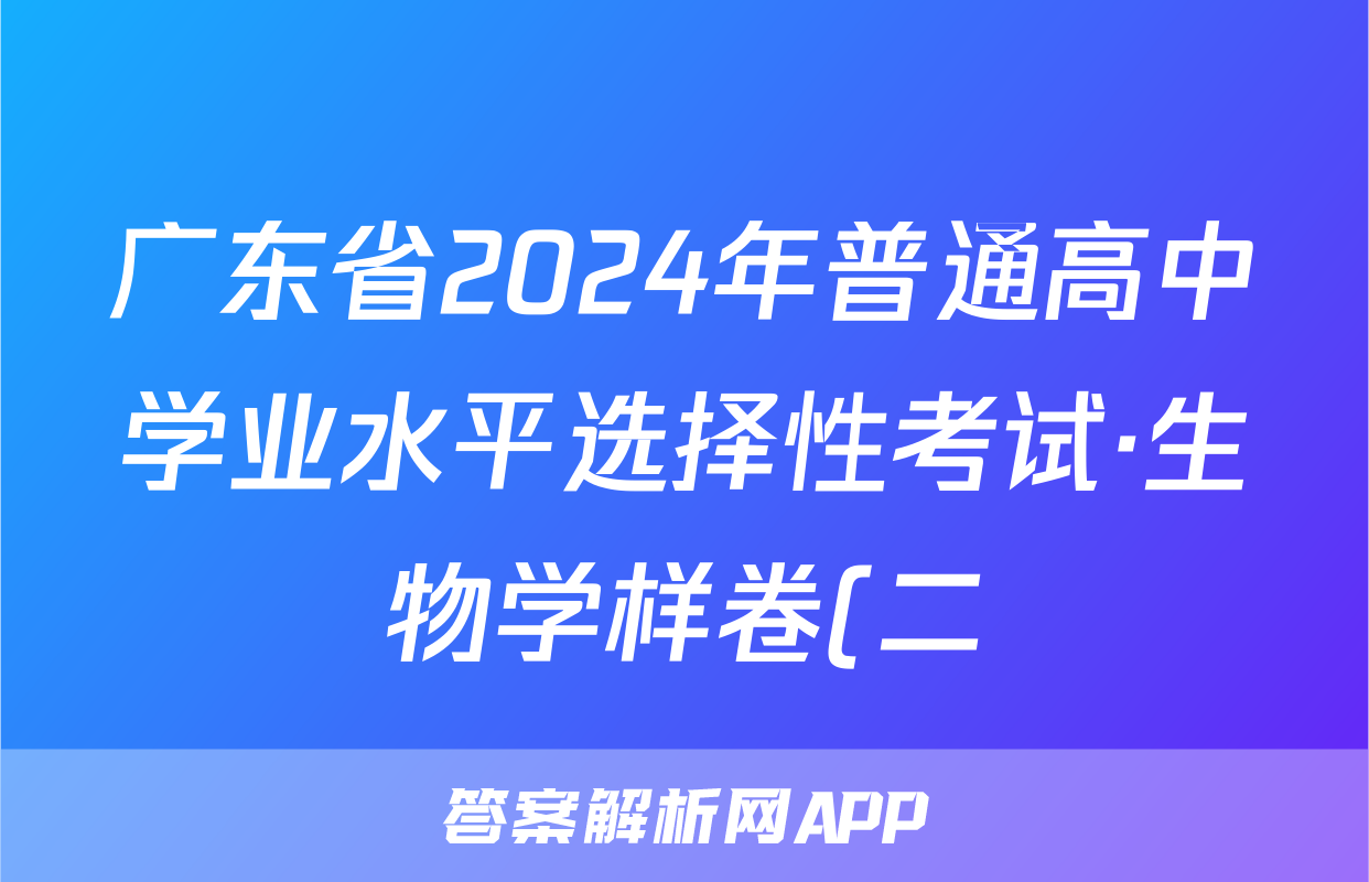 广东省2024年普通高中学业水平选择性考试·生物学样卷(二)2[24·(新高考)高考样卷·生物学·G DONG]试题正在持续更新,目前2026卷行天下答案网为大家整理了相关试题及答案,供大家查缺补漏,高效提升成绩。
