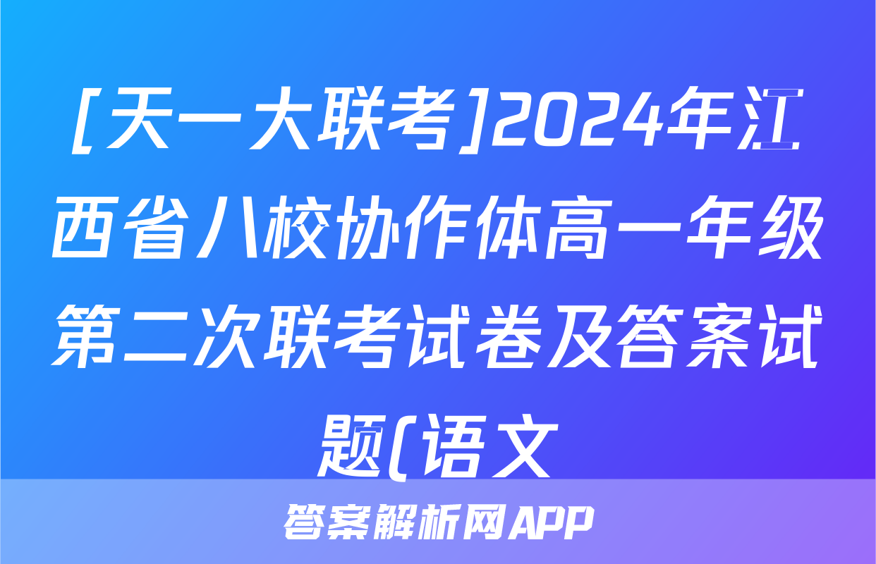 [天一大联考]2024年江西省八校协作体高一年级第二次联考试卷及答案试题(语文)正在持续更新,目前2026卷行天下答案网为大家整理了相关试题及答案,供大家查缺补漏,高效提升成绩。