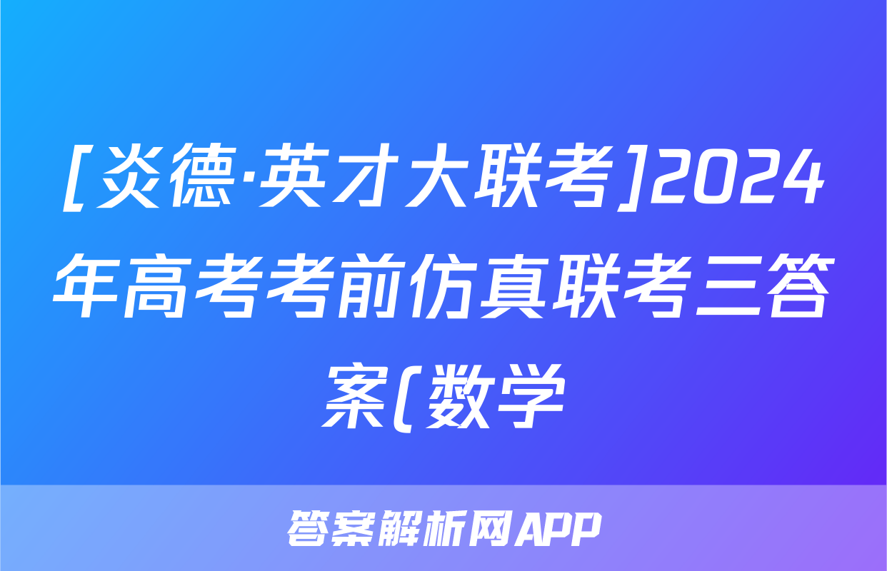 [炎德·英才大联考]2024年高考考前仿真联考三答案(数学)正在持续更新,目前2026卷行天下答案网为大家整理了相关试题及答案,供大家查缺补漏,高效提升成绩。