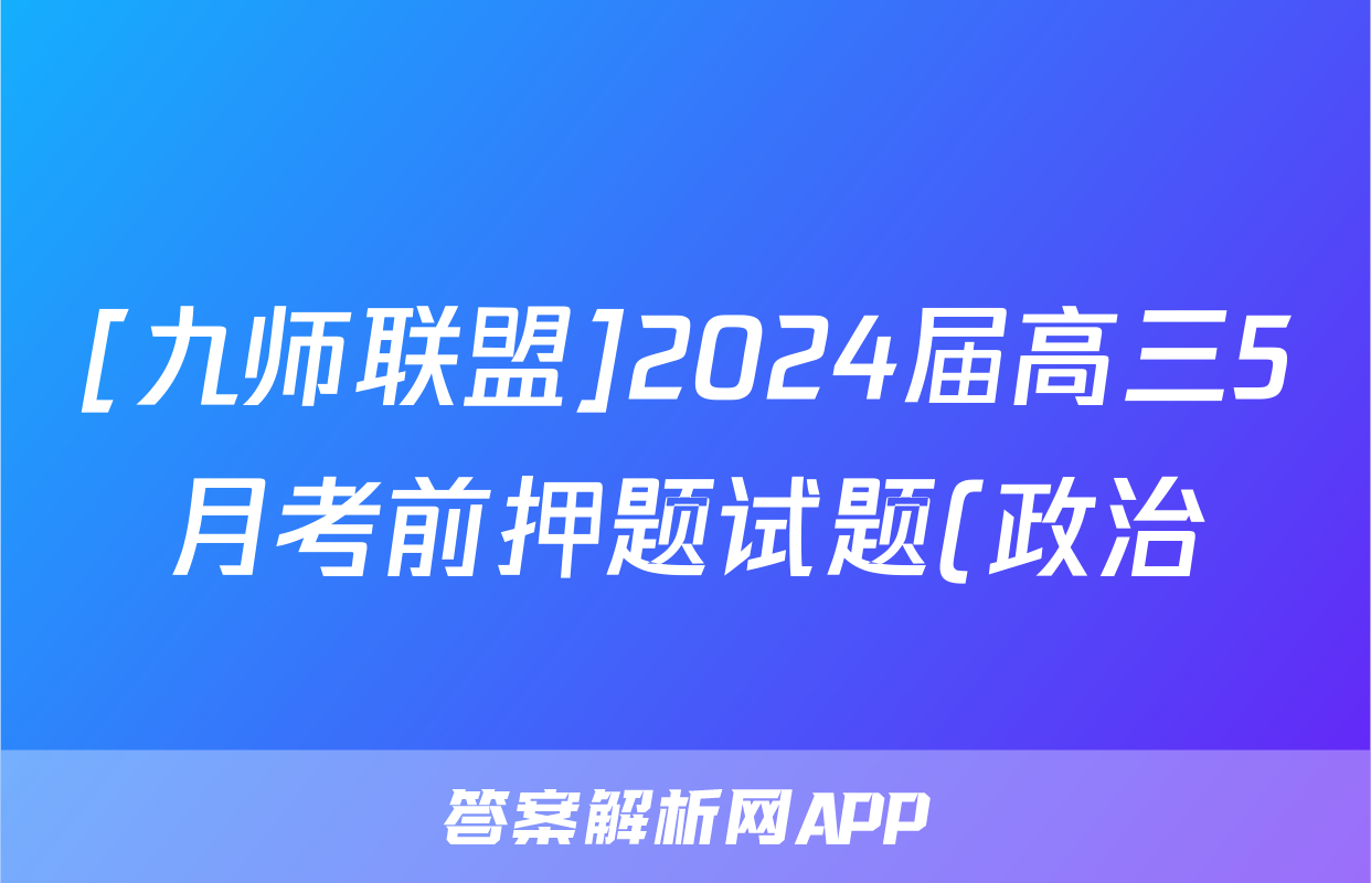 [九师联盟]2024届高三5月考前押题试题(政治)正在持续更新,目前2026卷行天下答案网为大家整理了相关试题及答案,供大家查缺补漏,高效提升成绩。