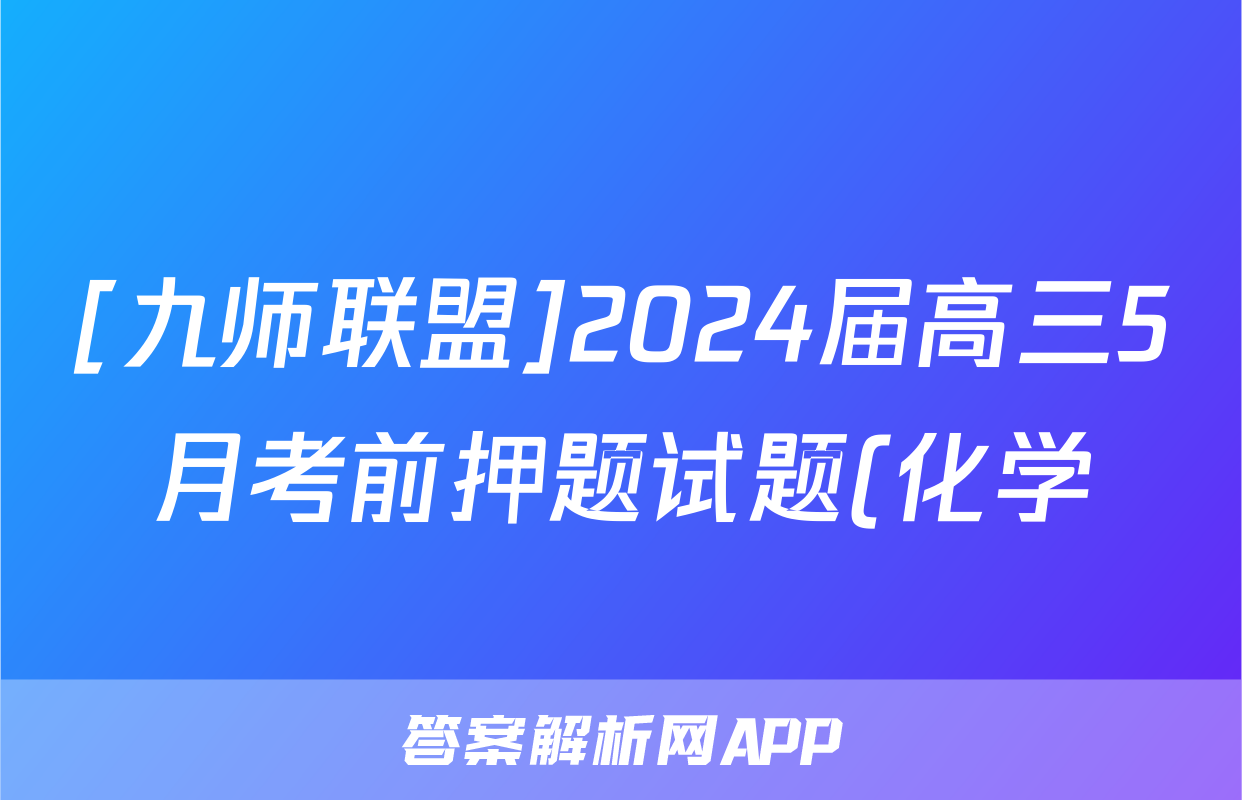 [九师联盟]2024届高三5月考前押题试题(化学)正在持续更新,目前2026卷行天下答案网为大家整理了相关试题及答案,供大家查缺补漏,高效提升成绩。