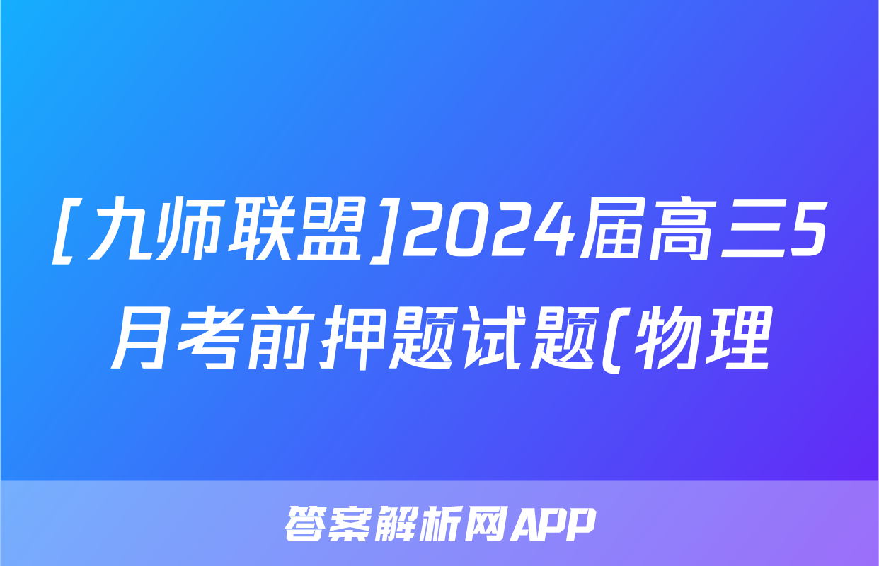[九师联盟]2024届高三5月考前押题试题(物理)正在持续更新,目前2026卷行天下答案网为大家整理了相关试题及答案,供大家查缺补漏,高效提升成绩。