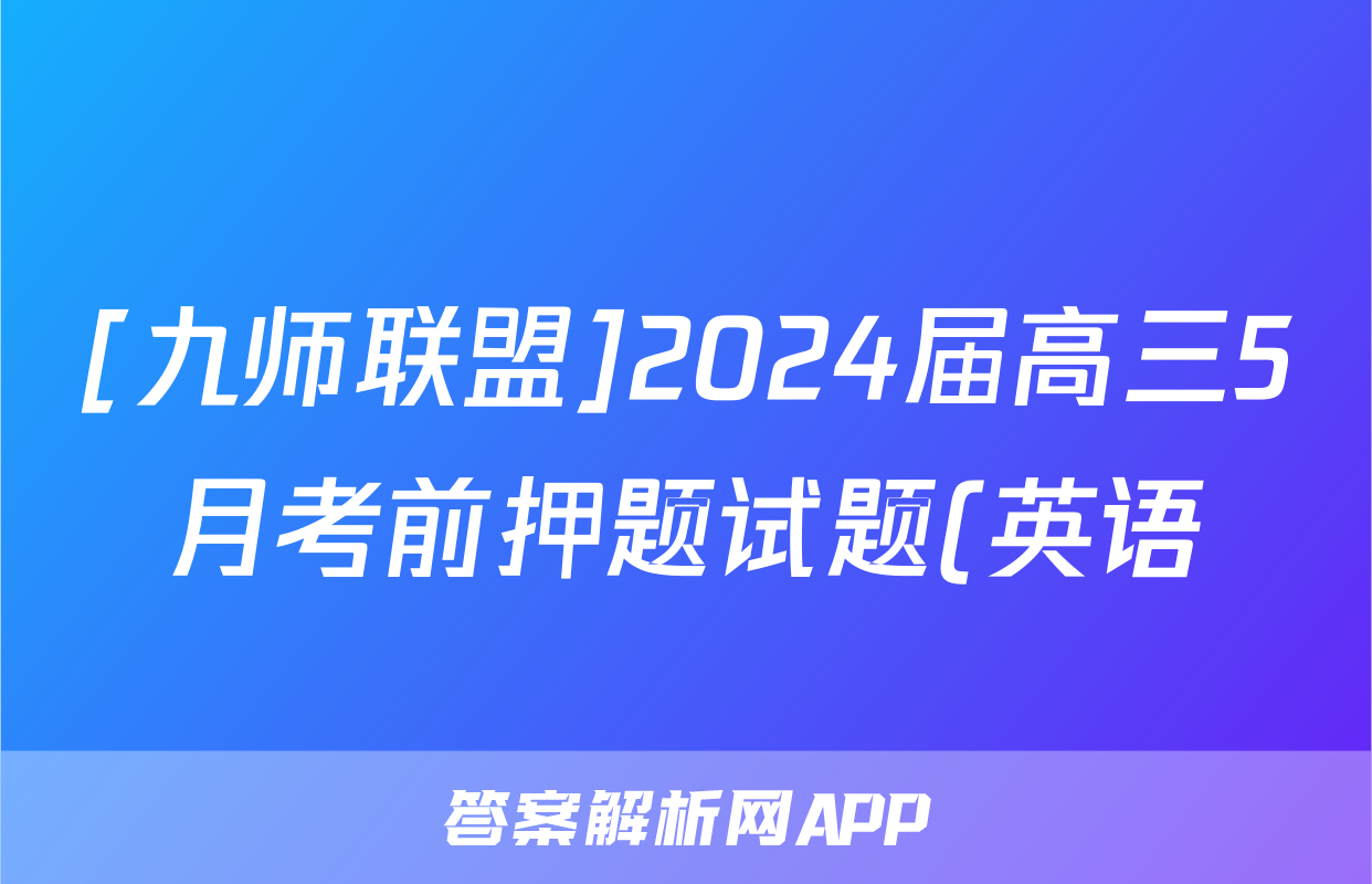 [九师联盟]2024届高三5月考前押题试题(英语)正在持续更新,目前2026卷行天下答案网为大家整理了相关试题及答案,供大家查缺补漏,高效提升成绩。