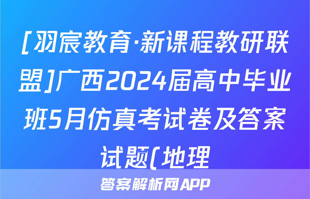 [羽宸教育·新课程教研联盟]广西2024届高中毕业班5月仿真考试卷及答案试题(地理)正在持续更新,目前2026卷行天下答案网为大家整理了相关试题及答案,供大家查缺补漏,高效提升成绩。