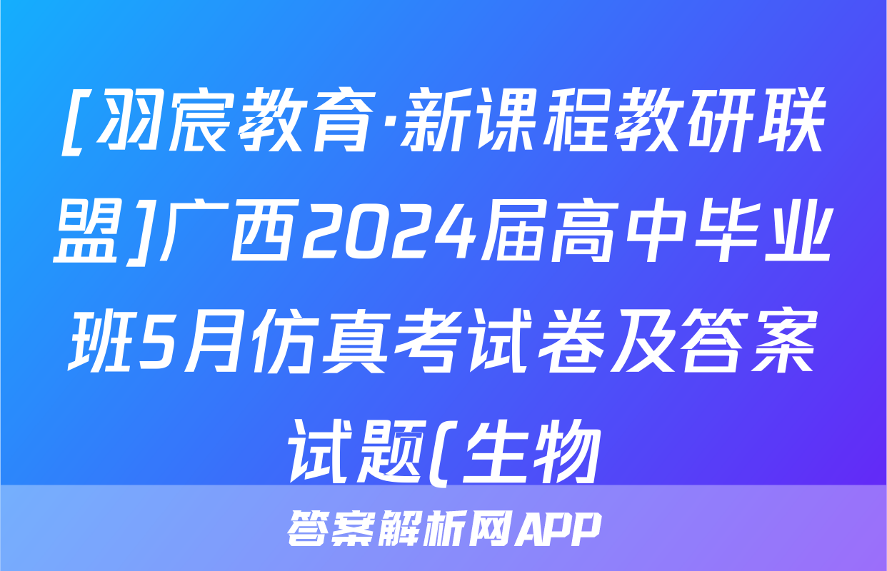 [羽宸教育·新课程教研联盟]广西2024届高中毕业班5月仿真考试卷及答案试题(生物)正在持续更新,目前2026卷行天下答案网为大家整理了相关试题及答案,供大家查缺补漏,高效提升成绩。