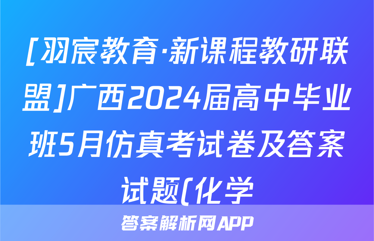 [羽宸教育·新课程教研联盟]广西2024届高中毕业班5月仿真考试卷及答案试题(化学)正在持续更新,目前2026卷行天下答案网为大家整理了相关试题及答案,供大家查缺补漏,高效提升成绩。