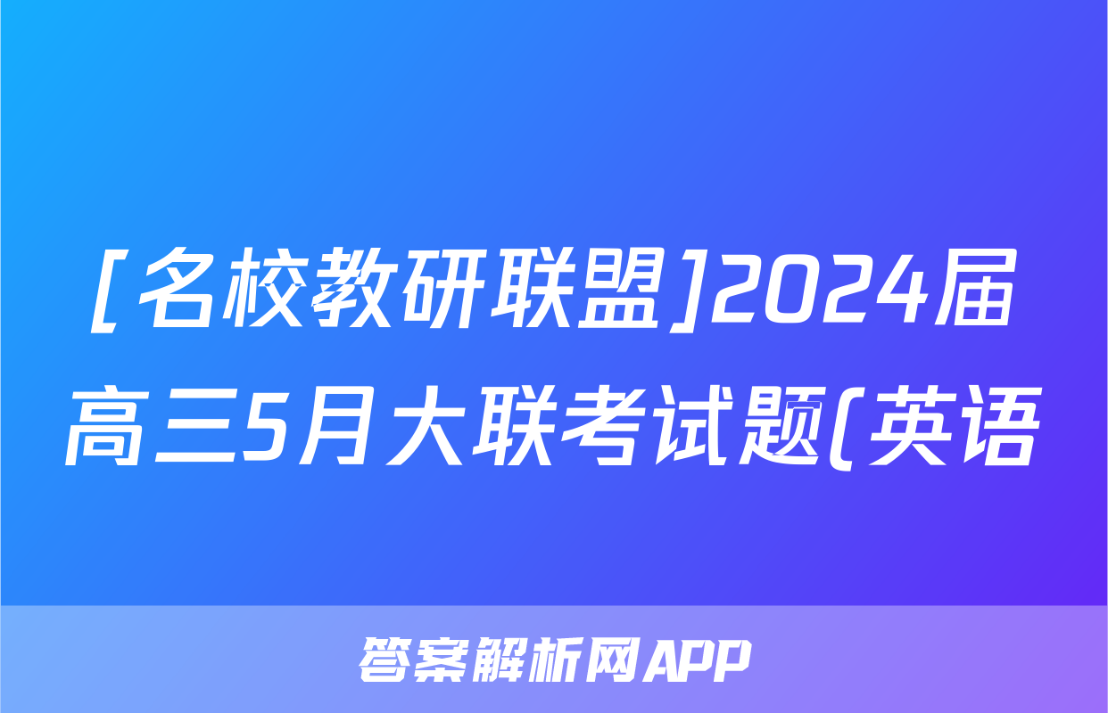[名校教研联盟]2024届高三5月大联考试题(英语)正在持续更新,目前2026卷行天下答案网为大家整理了相关试题及答案,供大家查缺补漏,高效提升成绩。