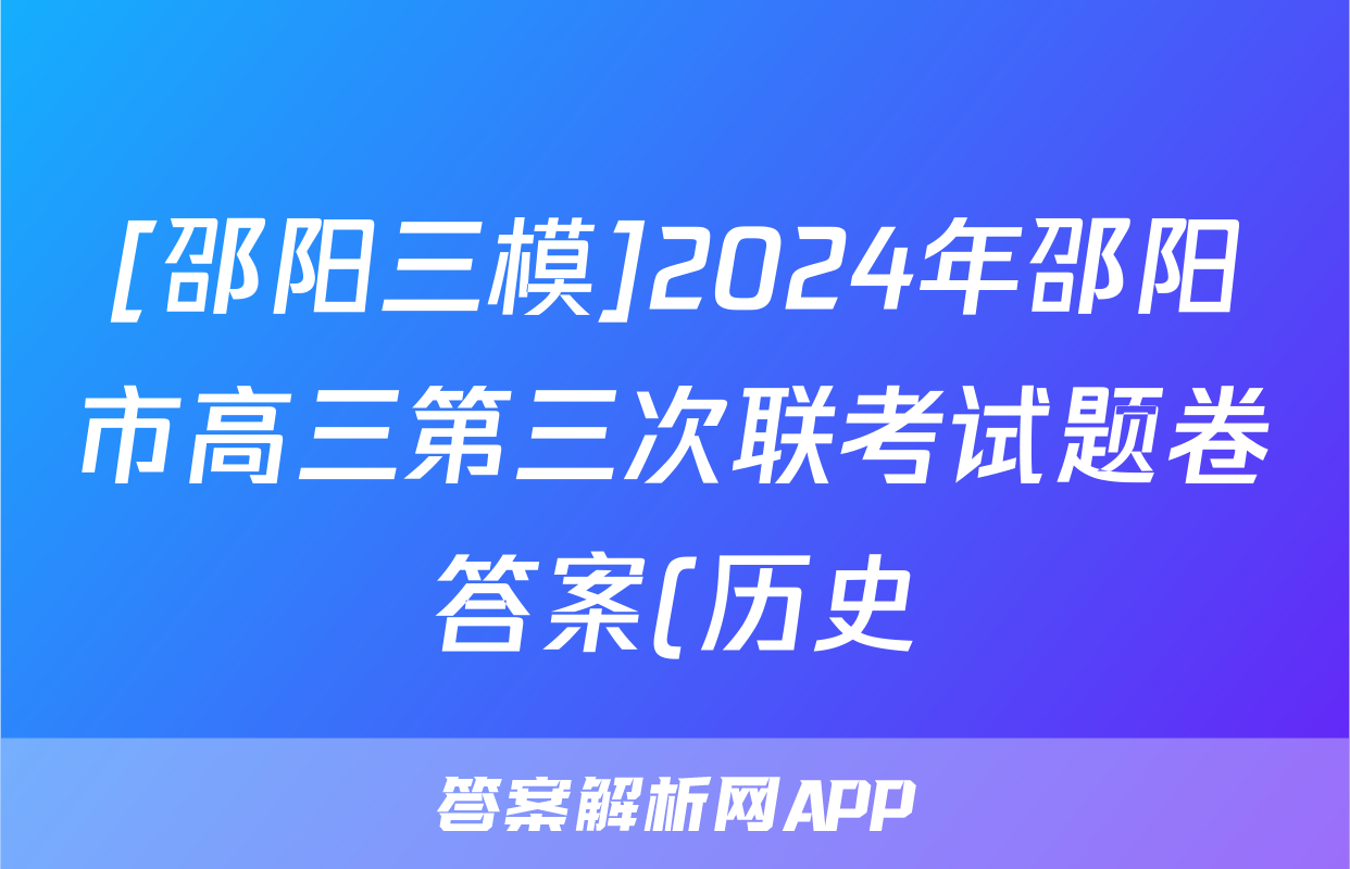 [邵阳三模]2024年邵阳市高三第三次联考试题卷答案(历史)正在持续更新,目前2026卷行天下答案网为大家整理了相关试题及答案,供大家查缺补漏,高效提升成绩。