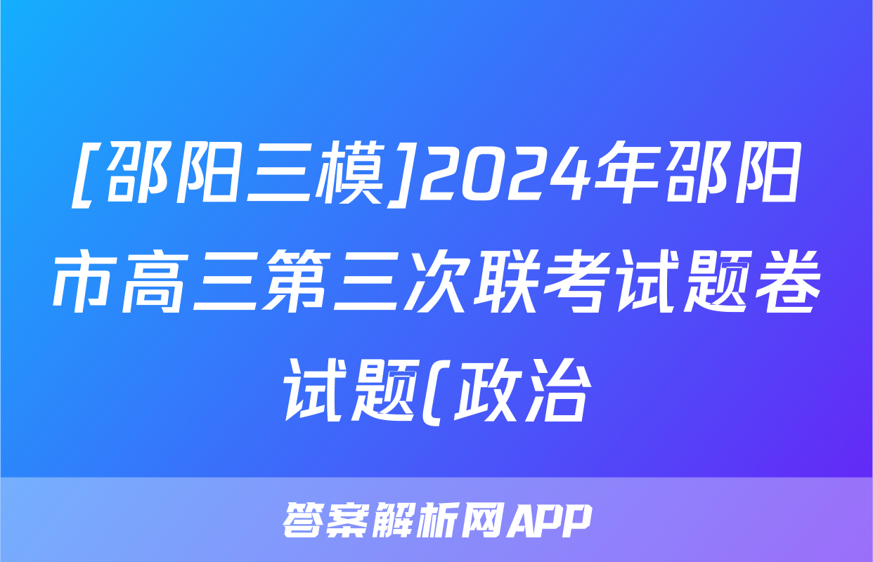 [邵阳三模]2024年邵阳市高三第三次联考试题卷试题(政治)正在持续更新,目前2026卷行天下答案网为大家整理了相关试题及答案,供大家查缺补漏,高效提升成绩。