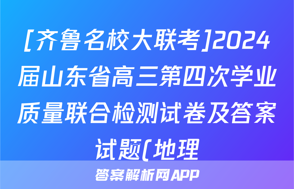 [齐鲁名校大联考]2024届山东省高三第四次学业质量联合检测试卷及答案试题(地理)正在持续更新,目前2026卷行天下答案网为大家整理了相关试题及答案,供大家查缺补漏,高效提升成绩。