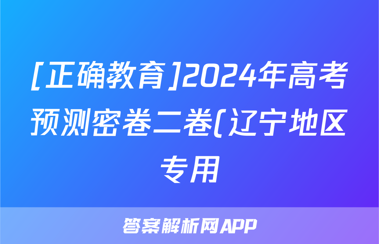[正确教育]2024年高考预测密卷二卷(辽宁地区专用)政治(辽宁)试题正在持续更新,目前2026卷行天下答案网为大家整理了相关试题及答案,供大家查缺补漏,高效提升成绩。