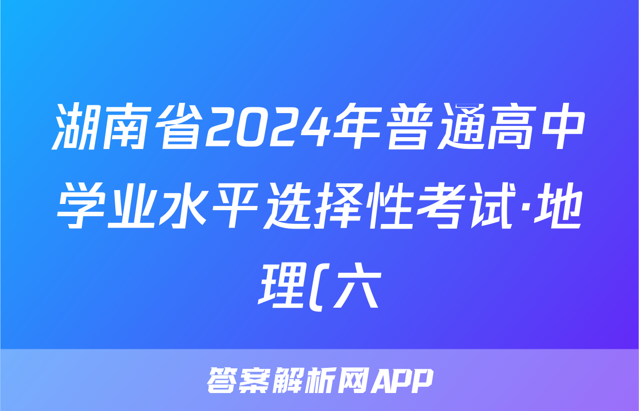 湖南省2024年普通高中学业水平选择性考试·地理(六)6[24·(新高考)ZX·MNJ·地理·HUN]试题正在持续更新,目前2026卷行天下答案网为大家整理了相关试题及答案,供大家查缺补漏,高效提升成绩。