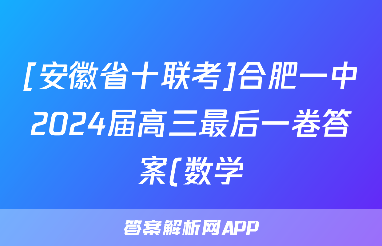 [安徽省十联考]合肥一中2024届高三最后一卷答案(数学)正在持续更新,目前2026卷行天下答案网为大家整理了相关试题及答案,供大家查缺补漏,高效提升成绩。