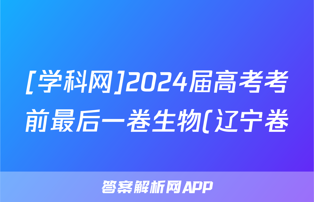 [学科网]2024届高考考前最后一卷生物(辽宁卷)试题正在持续更新,目前2026卷行天下答案网为大家整理了相关试题及答案,供大家查缺补漏,高效提升成绩。