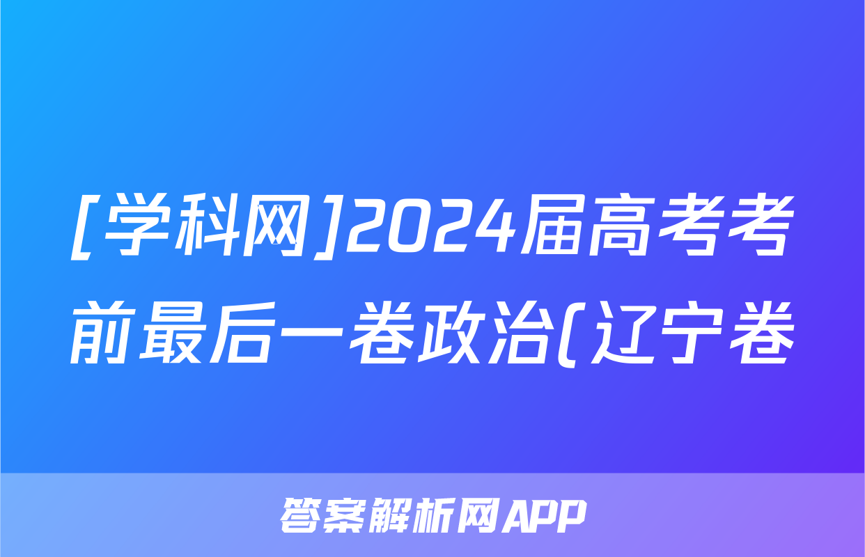 [学科网]2024届高考考前最后一卷政治(辽宁卷)试题正在持续更新,目前2026卷行天下答案网为大家整理了相关试题及答案,供大家查缺补漏,高效提升成绩。