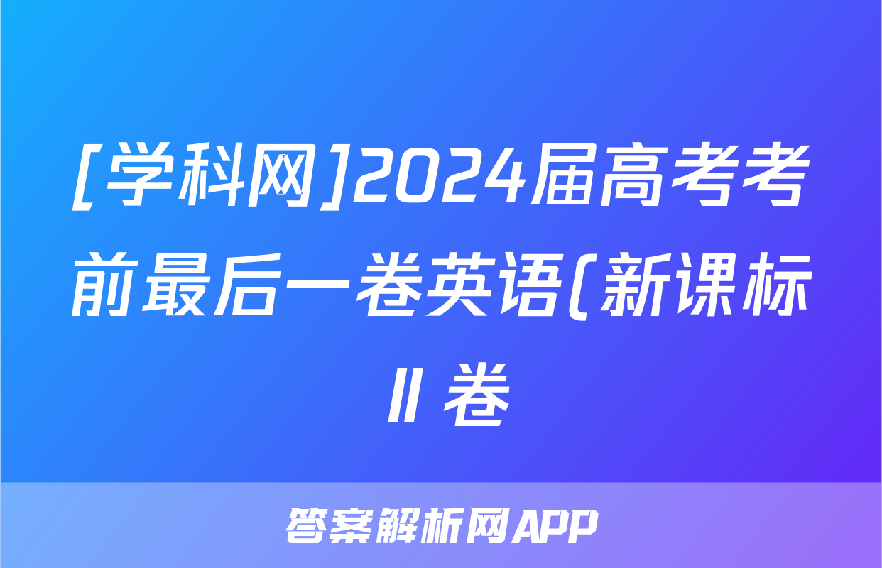 [学科网]2024届高考考前最后一卷英语(新课标Ⅱ卷)试题正在持续更新,目前2026卷行天下答案网为大家整理了相关试题及答案,供大家查缺补漏,高效提升成绩。