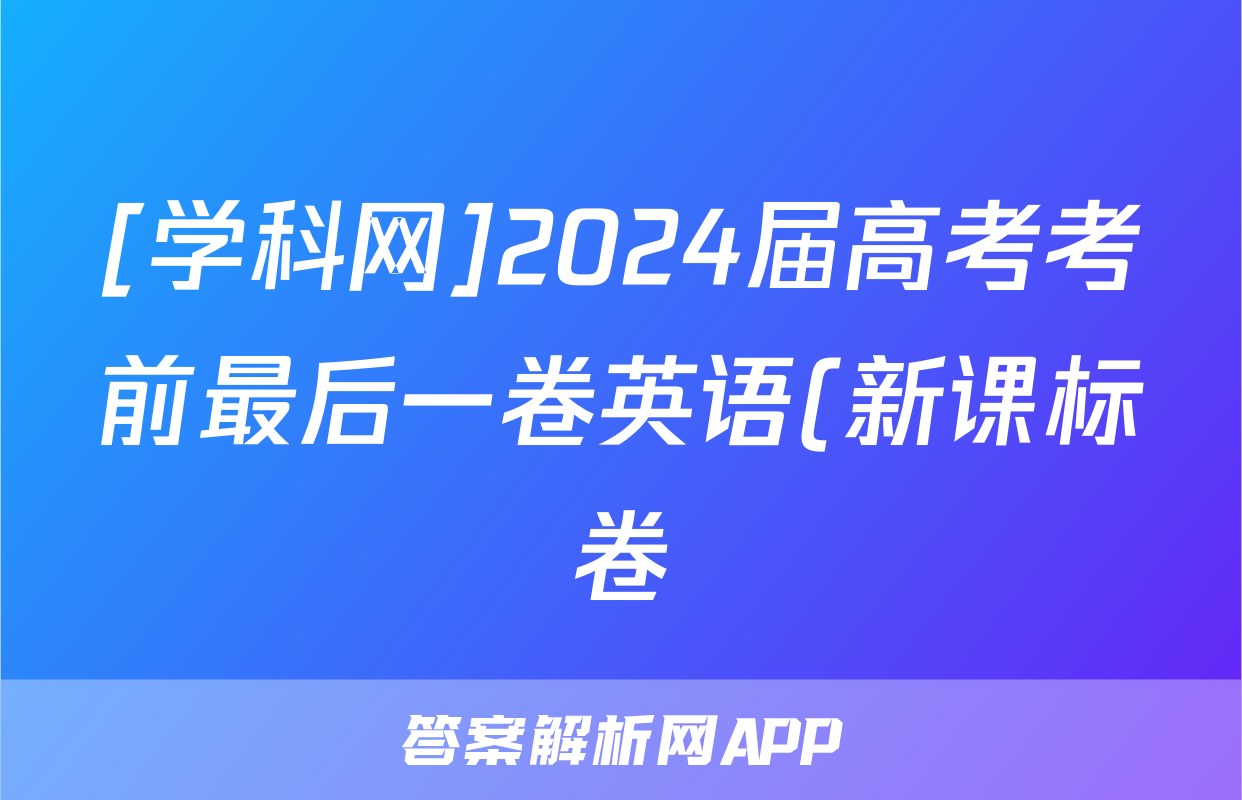 [学科网]2024届高考考前最后一卷英语(新课标卷)试题正在持续更新,目前2026卷行天下答案网为大家整理了相关试题及答案,供大家查缺补漏,高效提升成绩。