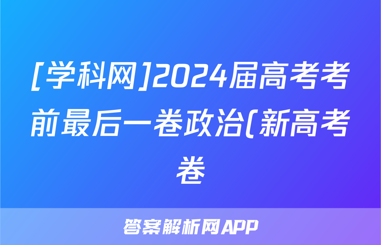 [学科网]2024届高考考前最后一卷政治(新高考卷)(新教材)答案正在持续更新,目前2026卷行天下答案网为大家整理了相关试题及答案,供大家查缺补漏,高效提升成绩。