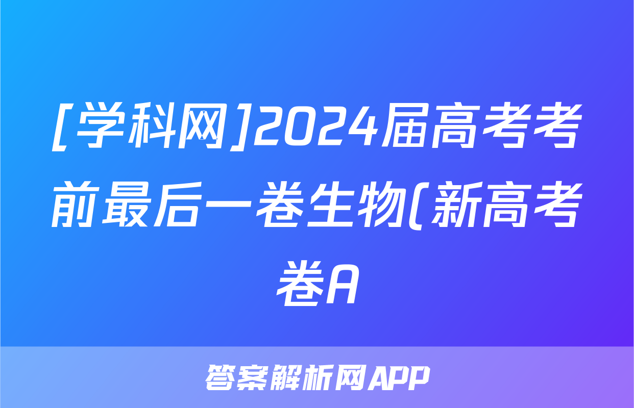 [学科网]2024届高考考前最后一卷生物(新高考卷A)(新教材)试题正在持续更新,目前2026卷行天下答案网为大家整理了相关试题及答案,供大家查缺补漏,高效提升成绩。