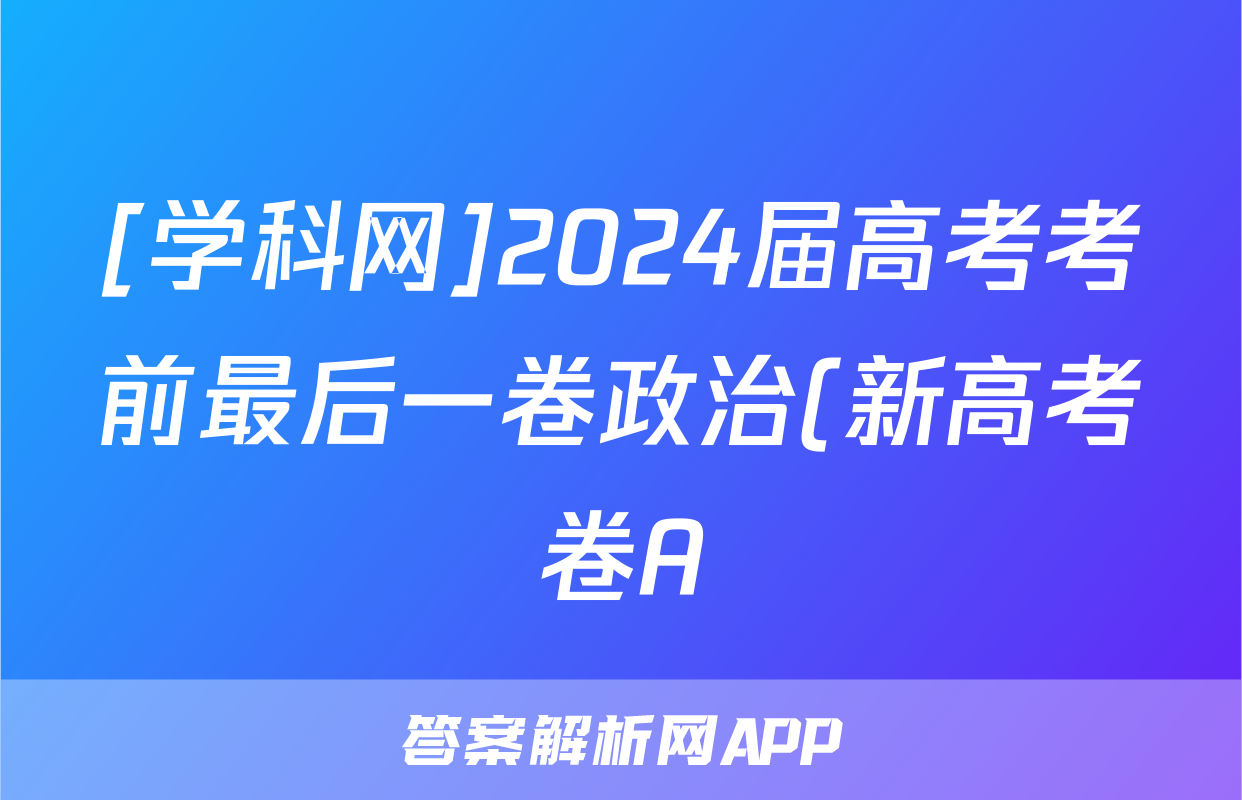 [学科网]2024届高考考前最后一卷政治(新高考卷A)(新教材)试题正在持续更新,目前2026卷行天下答案网为大家整理了相关试题及答案,供大家查缺补漏,高效提升成绩。