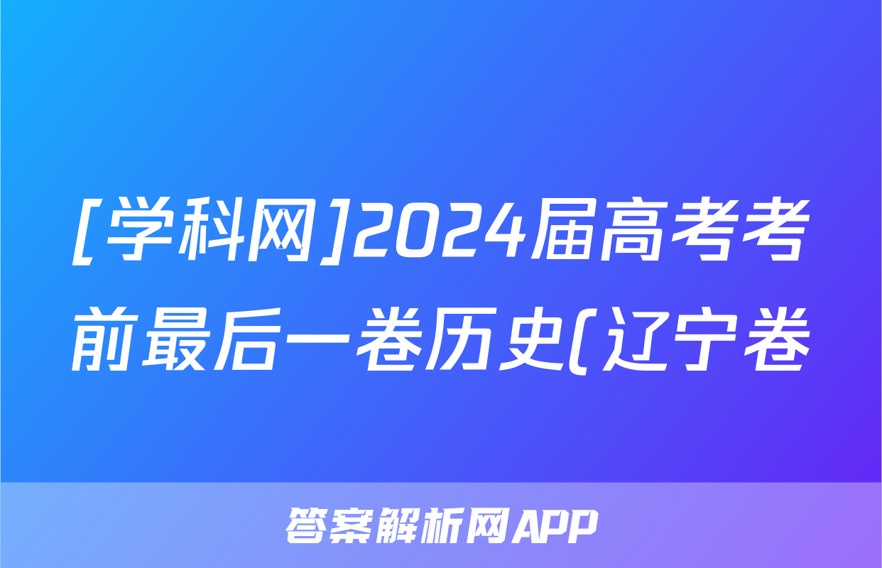 [学科网]2024届高考考前最后一卷历史(辽宁卷)试题正在持续更新,目前2026卷行天下答案网为大家整理了相关试题及答案,供大家查缺补漏,高效提升成绩。