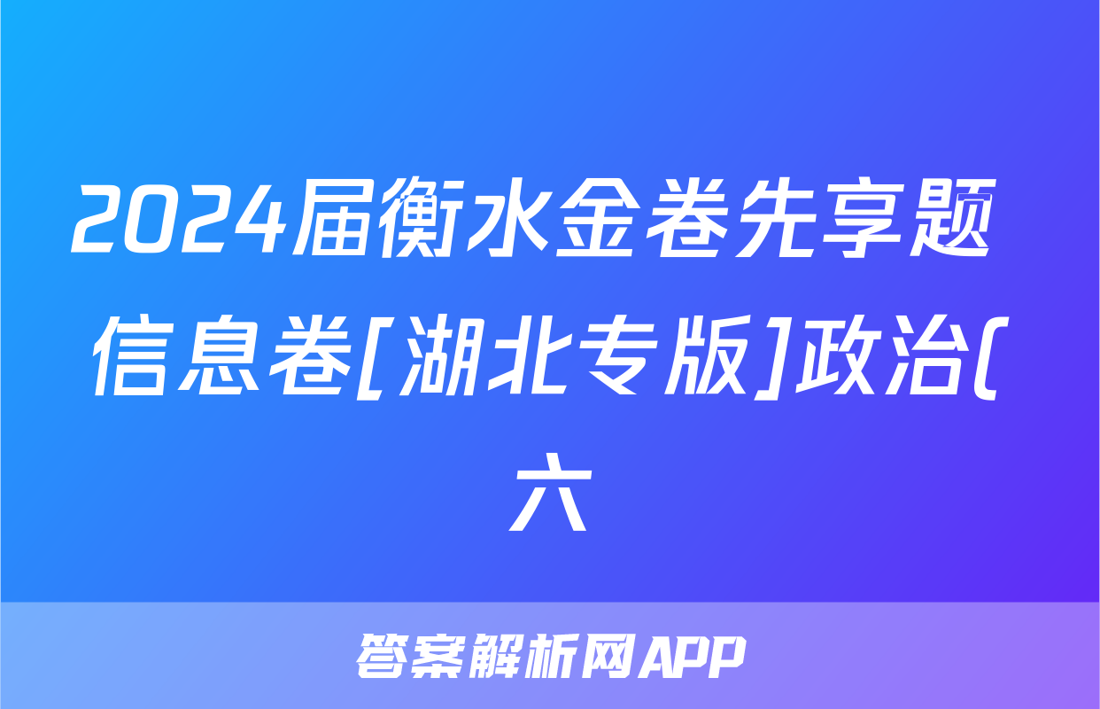 2024届衡水金卷先享题 信息卷[湖北专版]政治(六)6答案正在持续更新,目前2026卷行天下答案网为大家整理了相关试题及答案,供大家查缺补漏,高效提升成绩。
