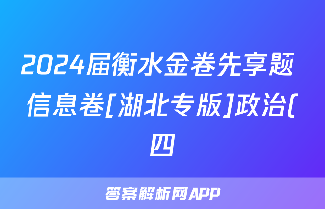 2024届衡水金卷先享题 信息卷[湖北专版]政治(四)4答案正在持续更新,目前2026卷行天下答案网为大家整理了相关试题及答案,供大家查缺补漏,高效提升成绩。