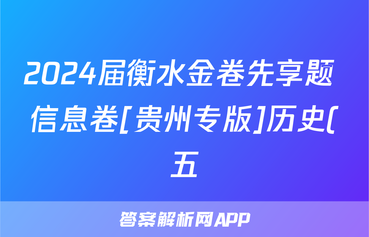 2024届衡水金卷先享题 信息卷[贵州专版]历史(五)5答案正在持续更新,目前2026卷行天下答案网为大家整理了相关试题及答案,供大家查缺补漏,高效提升成绩。