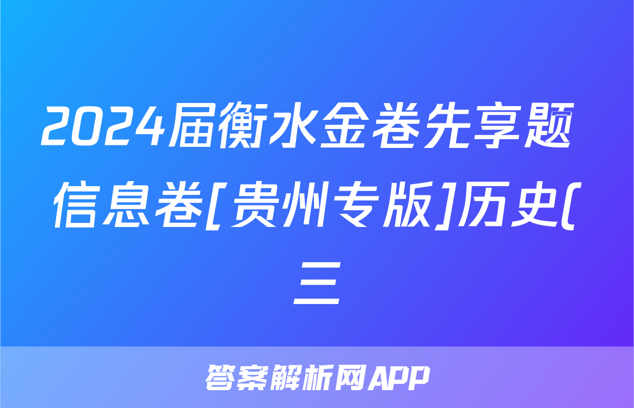 2024届衡水金卷先享题 信息卷[贵州专版]历史(三)3答案正在持续更新,目前2026卷行天下答案网为大家整理了相关试题及答案,供大家查缺补漏,高效提升成绩。