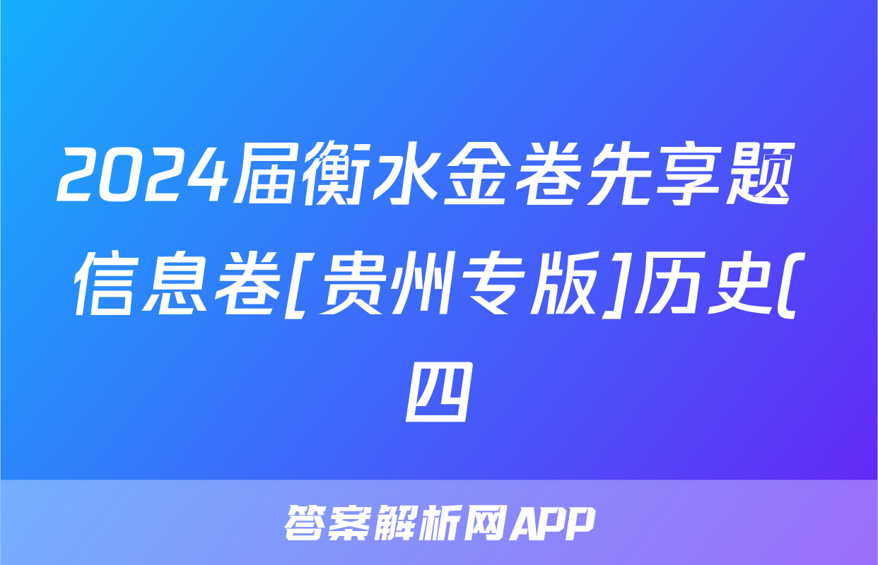 2024届衡水金卷先享题 信息卷[贵州专版]历史(四)4答案正在持续更新,目前2026卷行天下答案网为大家整理了相关试题及答案,供大家查缺补漏,高效提升成绩。