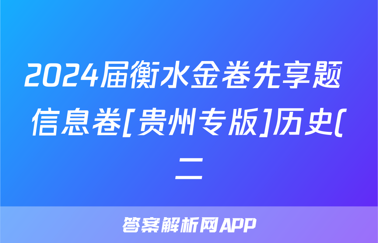 2024届衡水金卷先享题 信息卷[贵州专版]历史(二)2答案正在持续更新,目前2026卷行天下答案网为大家整理了相关试题及答案,供大家查缺补漏,高效提升成绩。