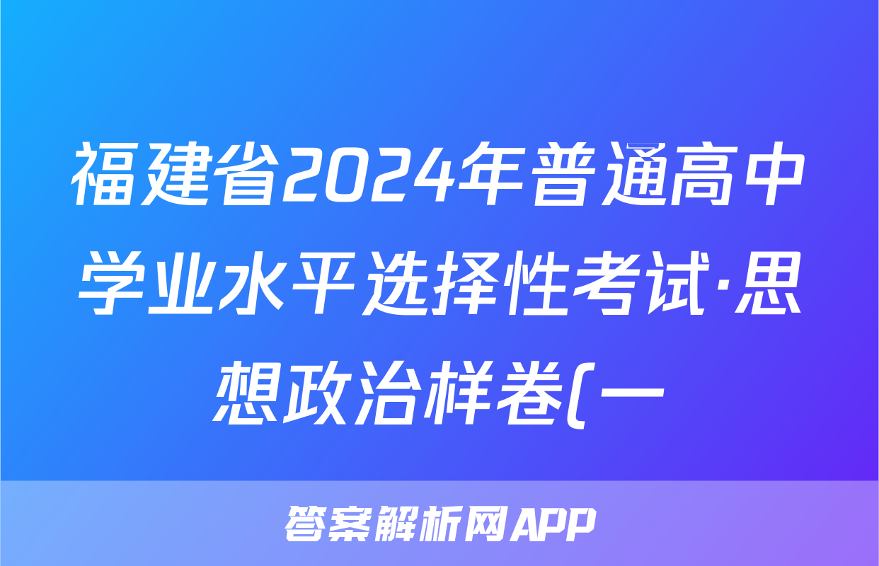 福建省2024年普通高中学业水平选择性考试·思想政治样卷(一)1[24·(新高考)高考样卷·思想政治·FJ]答案正在持续更新,目前2026卷行天下答案网为大家整理了相关试题及答案,供大家查缺补漏,高效提升成绩。